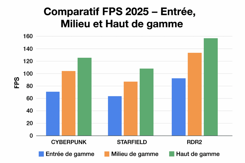 Config | Prix (~€) | Résolution cible | Cyberpunk 2077 | Starfield | RDR2 |