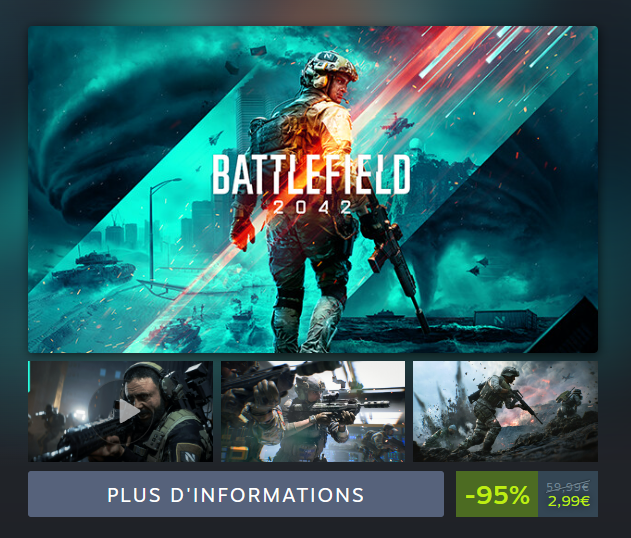 Pour accompagner cette attente, EA et DICE ont lancé une promotion exceptionnelle sur Battlefield 2042, toujours disponible sur Steam : le jeu est affiché à -95 %, soit environ 3 € seulement, jusqu’au 2 septembre 2025.
