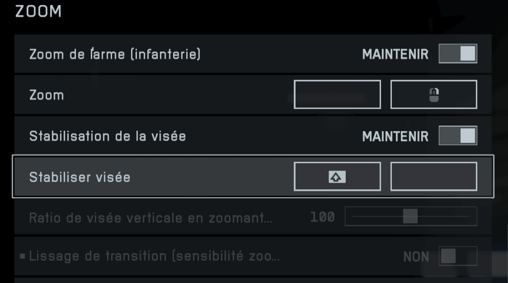 Avec le Lissage de transition en zoomant, le jeu ajoute une accélération artificielle à la sensibilité lorsque vous passez en mode zoom. Cela peut donner l’impression que la souris « saute » ou que la visée est moins contrôlable, surtout lors de mouvements rapides ou de transitions entre cibles.