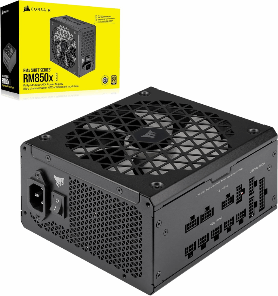 - Corsair RM850x Shift : qualité électrique de premier plan, connecteurs sur la tranche pour simplifier le cable-management, ventilateur discret. Très bien notée en régulation, ripple et tenue thermique dans les bancs d’essai Tom’s Hardware. Voir sur Amazon.fr.